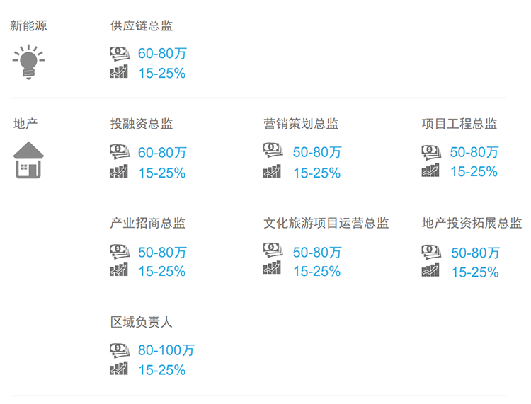 2017-2018年,整个天津区域薪酬呈现上涨趋势,整体涨幅在10%以上。从行业看,互联网、金融、地产等行业薪酬较高,涨幅15-25%左右。(文中部分数据是猎头公司圣淘沙dh国际专家顾问的分析预测,供企业和猎头招聘参考)